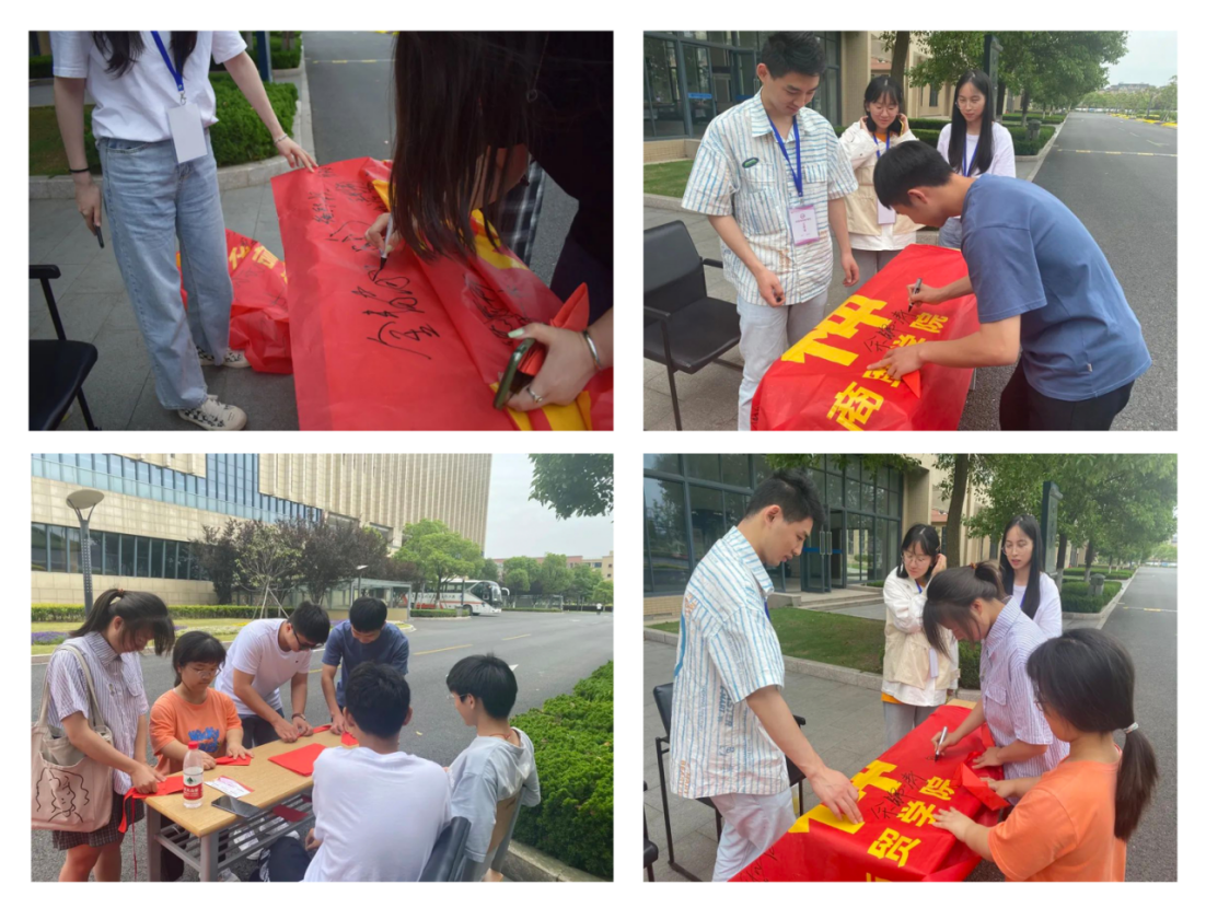 第一个关卡:“南湖”——红船精神的发源地。游戏规则:折出一艘红船并在横幅上签名即为闯关成功。参赛队员们将“红船”折的栩栩如生,仿佛置身在1921年的那艘红船上,展现了同学们对红船精神的透彻理解;同学们在横幅上签名,表达了对红船精神的崇敬之心。