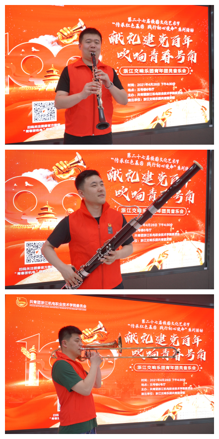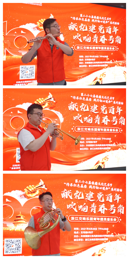 为纪念“五四运动”,庆祝建党一百周年,引导和教育青年团员继承和弘扬“爱国、进步、民主、科学”的“五四精神”,2021年4月28日晚,校团委邀请浙江交响乐团的青年团员演奏家们,在滨江校区5号楼6号厅为我校师生带来了一场以“献礼建党百年,吹响青春号角”为主题的音乐会。本次活动由校团委主办,我校大学生艺术团天籁凌云管乐团、校内音乐爱好者两百余人汇聚一堂,聆听青年演奏家们的精彩表演。