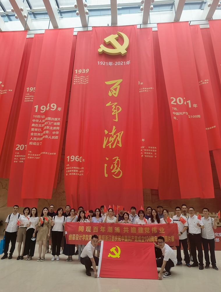 为庆祝建党百年,将党史学习教育落到实处、学到细处、悟到实处,7月28日下午,创意设计学院党总支赴浙江省档案馆开展同观百年潮涌、共瞻建党伟业主题党日活动,参观“百年潮涌——浙江省庆祝中国共产党成立100周年大型图片展”,学校党委委员、创意设计学院院长邓劲莲,创意设计学院党总支书记及其他党员同志共同参加了本次活动。