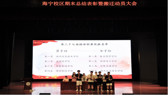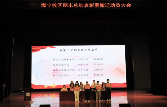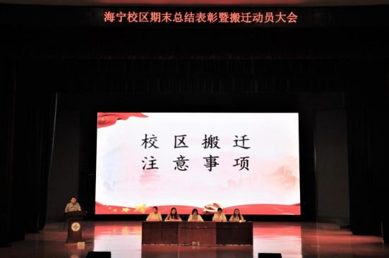 2021年6月17日晚,海宁校区召开2020-2021学年第二学期期末总结表彰暨搬迁动员大会。学生处副处长方惠玲、图书信息中心刘利芳老师、计划财务处张婷老师以及长安综合办徐红梅医生出席,海宁校区公寓办老师、各分院辅导员、获奖学生代表及各班班委、寝室长代表共250余人参加会议。会议由学生处王瑞主持。