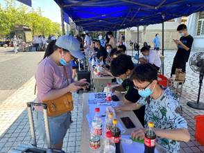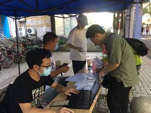 8月31日上午,学院党总支书记钱永林、副书记于施佳、学工办主任罗鹏举和辅导员在报到点迎接学生返校。