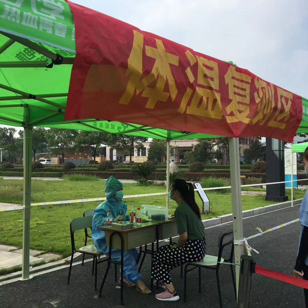 演练主要进行了学生报到校园管控演示、突发事件应急处置以及寝室突发事件应急处置三项演示。学生报到演练开始,学生乘坐私家车按交警指挥进入预设车辆通道并在指定下车点学生下车,学生按间隔一米要求有序排队,经过查看录取通知书、健康码、防疫行程卡、测温正常后有序入校;应急处置的场景设置为一名学生因体温测量显示异常,启动应急预案进行处置;模拟寝室突发学生自测体温异常突发应急处置。整个演练过程指挥有力,衔接紧密,应急人员分工明确、反应迅速,达到了预期效果。