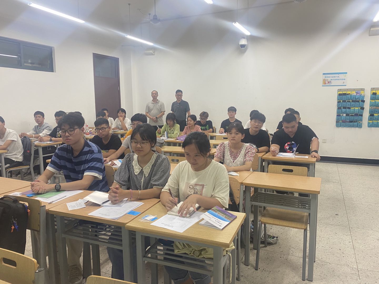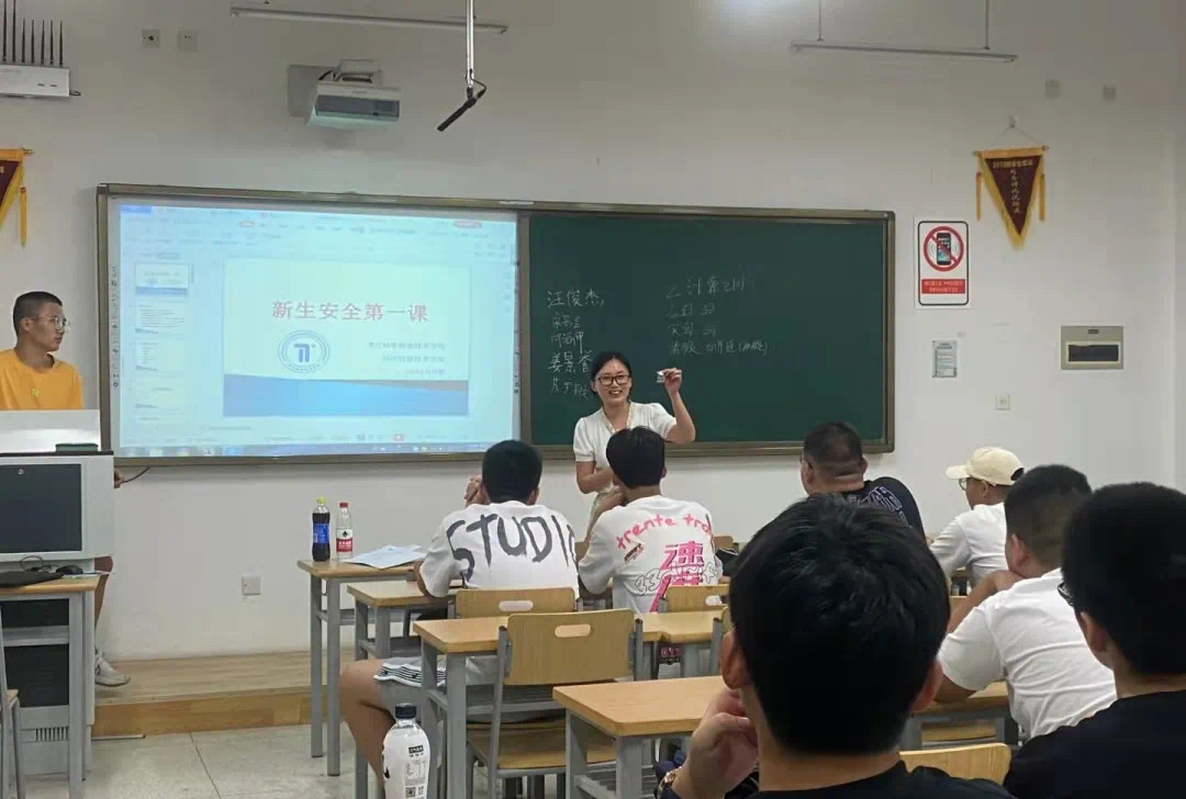 走进班会现场。任峰带领海宁校区辅导员,介绍学院概况和特色文化活动,畅谈职业生涯发展规划,指导、讲解新生防诈骗、安全、医保、体检等开学教育内容,鼓励新生们快速进入角色,主动适应大学生活,立定专业发展和素质提升目标。