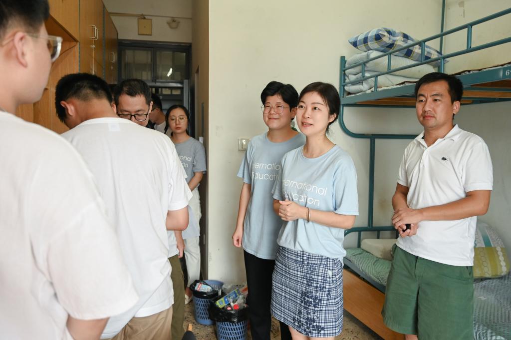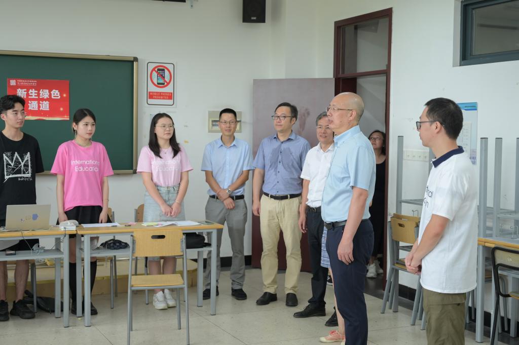 6日上午, 新生报道期间,校党委书记汤兆武、党委副书记周增逵等校领导在相关职能部门负责人的陪同下,来到迎新现场,了解迎新工作流程和新生报到情况。汤书记表示,国际教育学院是具有国际视野和多文化融合的学院,学生热情积极、思维活跃,能展现出国际教育学院的风采,未来发展大有可为。此外,校领导们与新生亲切交谈,询问遇到的困难,鼓励大家保持热情,寄语学生美好希望。