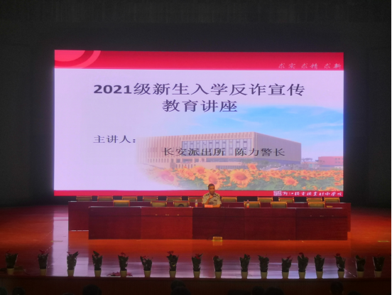 讲座中,长安派出所警长陈力通过一系列近几年发生的电信网络诈骗典型案例展开解说并做出分析,引导新生正确看待“网红”现象,提醒新生认清“套路贷”,理性对待网络游戏,并提醒新生如何全面增强安全防范意识和提高识骗、防骗的能力,教育新生做好防范举措。