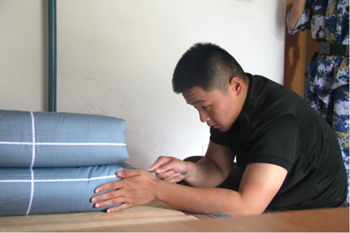 军训期间,军训内务是我院着重紧抓项目。军训内务是大学生步入校园的第一课,学院在立德树人目标下,将价值观教育、学生成长成才教育融入军训内务教育中,注重学生生活管理育人,培养同学们进取成长、艰苦奋斗的良好品质,和严于律己,从自身做起、从细节做起的优良作风,紧抓细节开展育人工作,夯实基础形成良好院风。