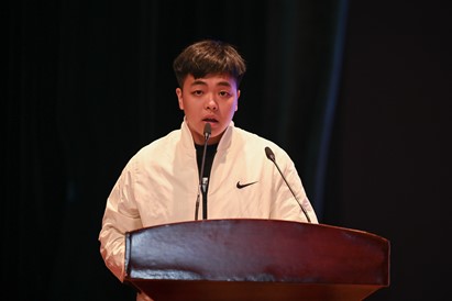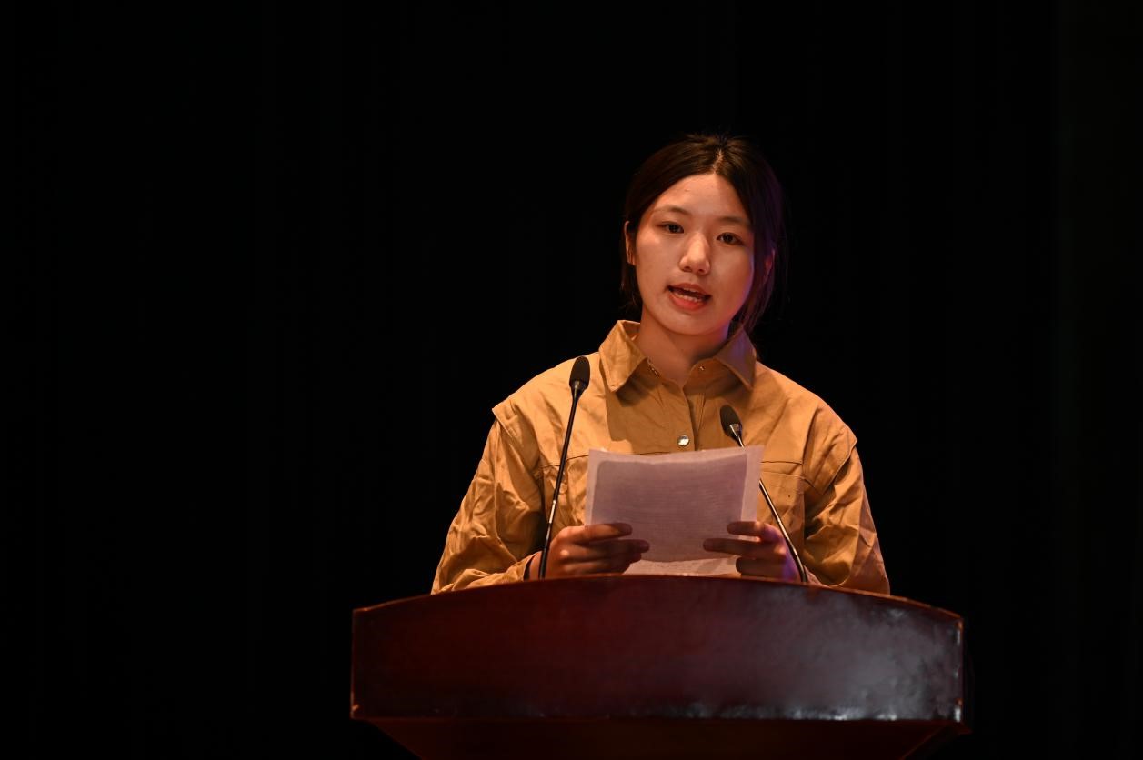 学生会主席、国贸1981班周跃腾作为学生代表发言。大学期间要学会沟通与宽容,逐渐走向成熟,秉承求实、求精、求新的校训,走向更有意义的人生。新生代表国贸2182马可欣上台发言,表示作为新机电人要孜孜不倦地学习,博采众长,在未来三年努力学习,积极进取,不断提高个人综合素质。