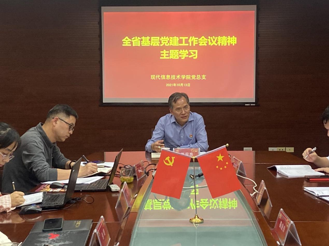 10月13日下午,现代信息技术学院党总支组织全体师生党员开展主题党日活动,深入学习全省基层党建工作会议精神。学校党委副书记周增逵领学省委书记袁家军的重要讲话精神,会议由学院党总支书记任峰主持。