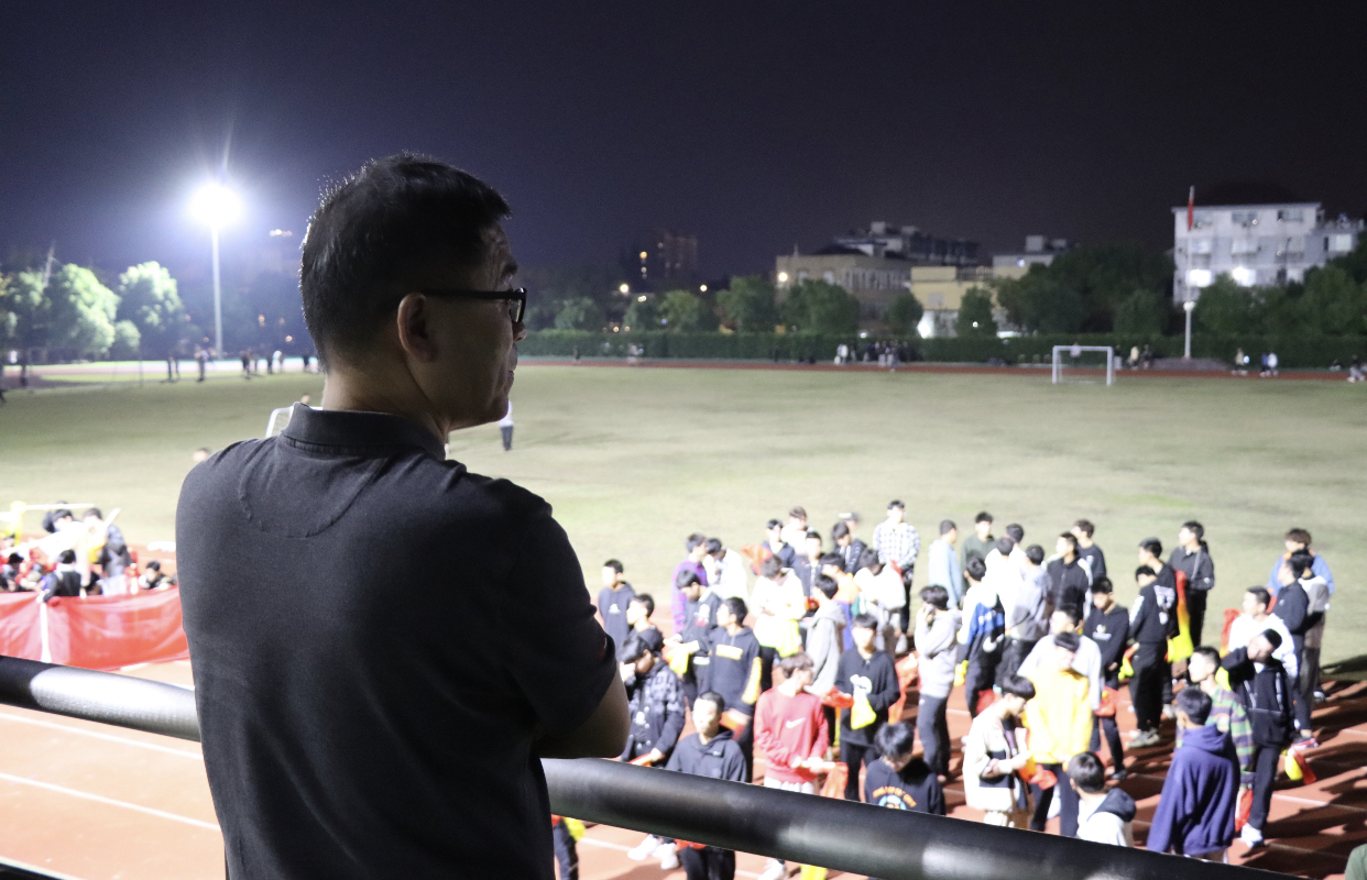 为提升学生体育运动意识,调动学生参与体育运动积极性,更好进行学校第四十一届田径运动会赛前准备,10月26日晚,现代信息技术学院党总支书记任峰在海宁校区排球场,为正在训练的信息健儿们动员鼓劲儿。