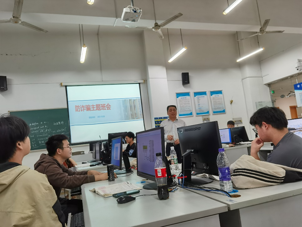为提高我院学生的安全防范意识,增强自我保护能力,进一步维护同学们的自身合法权益,10月26日,我院接保卫处通知组织两校区班主任在各班级积极开展了以“诈骗案例分析,共建平安校园”为主题的主题班会活动。