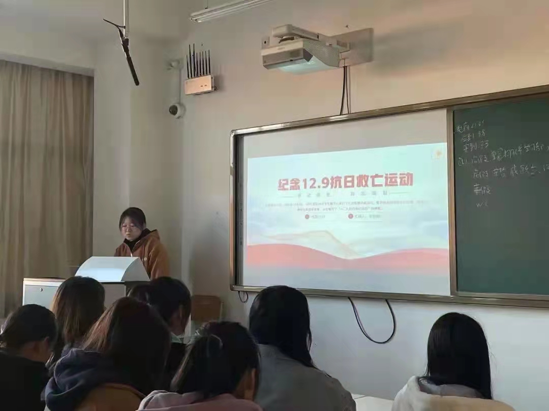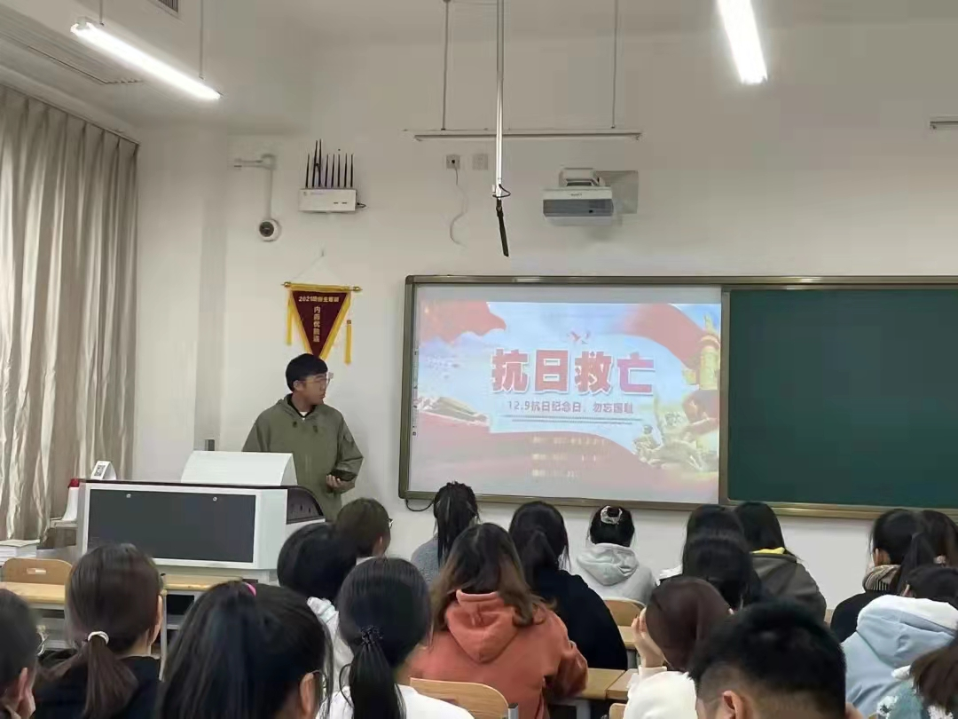 “一二九”是运动一个爱国运动,是学生们在中国共产党的领导下举行的一次抗日救亡。1931年,日本侵占了我国的东北、华北地区,国民党采取了“不抵抗”政策。中共带领北平学生六千余人高举“停止内战,一致抗日”、“打倒日本帝国主义”的旗帜,举行爱国运动。这次爱国运动有非常深远的意义,打击了日寇与国民党的反动气焰,推动了抗日民族统一战线的建成。为纪念“一二九”运动86周年,弘扬爱国精神,加强学生思想政治教育,数字商贸学院于近日开展了“一二九”主题班会活动。