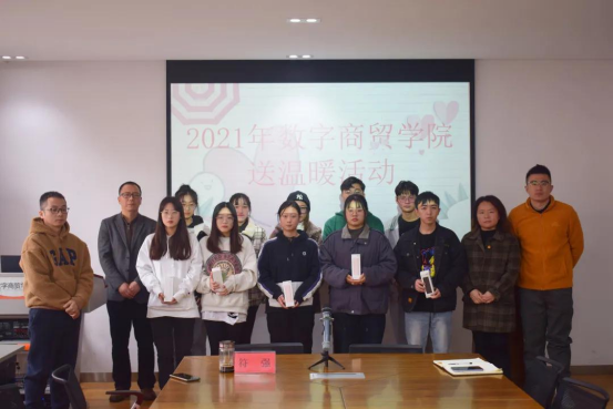 2021年12月8日下午,数字商贸学院在2-312进行了冬日送温暖活动。数字商贸学院党总支副书记符强,学工办副主任王慧老师、辅导员周晓东、白杉杉老师出席本次活动。