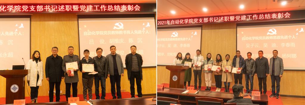 2021年12月22日下午,自动化学院党总支在5号楼二号厅召开2021年度党支部书记述职暨党建工作总结表彰会,会议总结了学院党总支2021年党建工作情况,部署了2022年的工作任务,听取了6位党支部书记抓基层党建工作的述职,并对党员教师教书育人先进个人进行了表彰。党总支书记钱永林,党总支副书记、院长陈罡,党总支副书记于施佳,党总支委员、副院长刘哲纬,党总支委员黄忠慧、朱玉堂、罗鹏举,各党支部书记及全体党员参加了会议。会议由党总支副书记于施佳主持。
