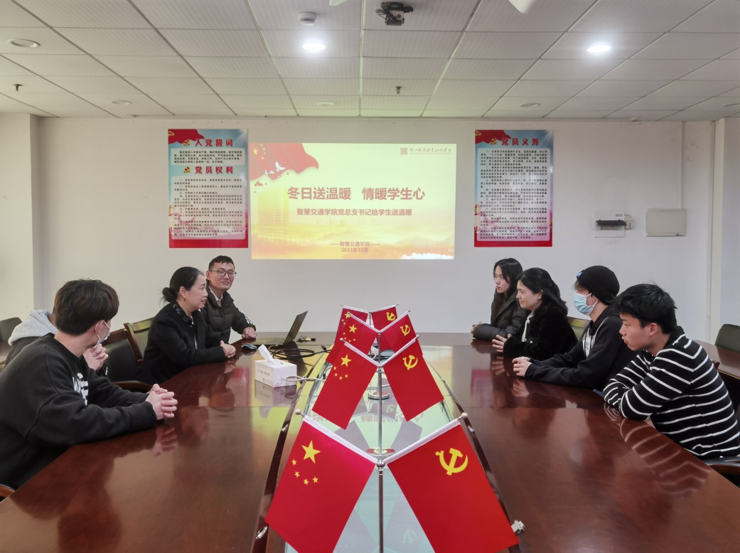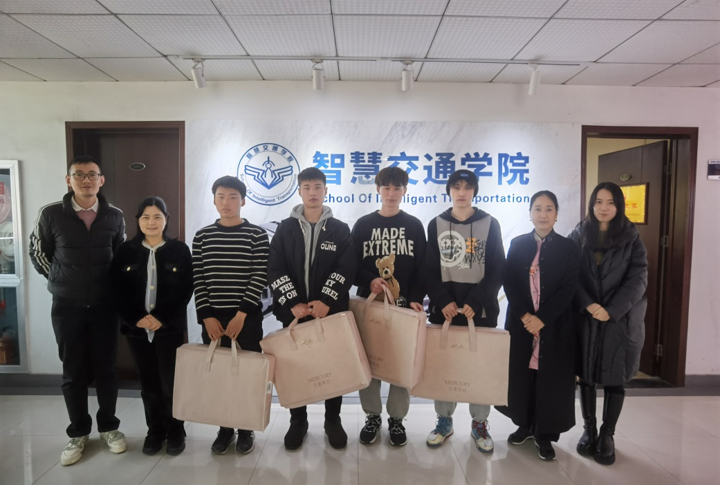 为进一步将经济困难生资助工作落实落细,将学校对困难生关怀和重视传递到每位学生,智慧交通学院于12月23日开展了“冬日送温暖,情暖学生心”送温暖活动。活动以经济困难学生实际需求为出发点,为学生送上御寒棉被等,让困难学生在寒冬中感受到浓浓的暖意,彰显我院对困难学生的人文关怀。智慧交通学院党总支书记宋伟文、学工办副主任姚婷、辅导员周传超和石涛共同参与本次活动。