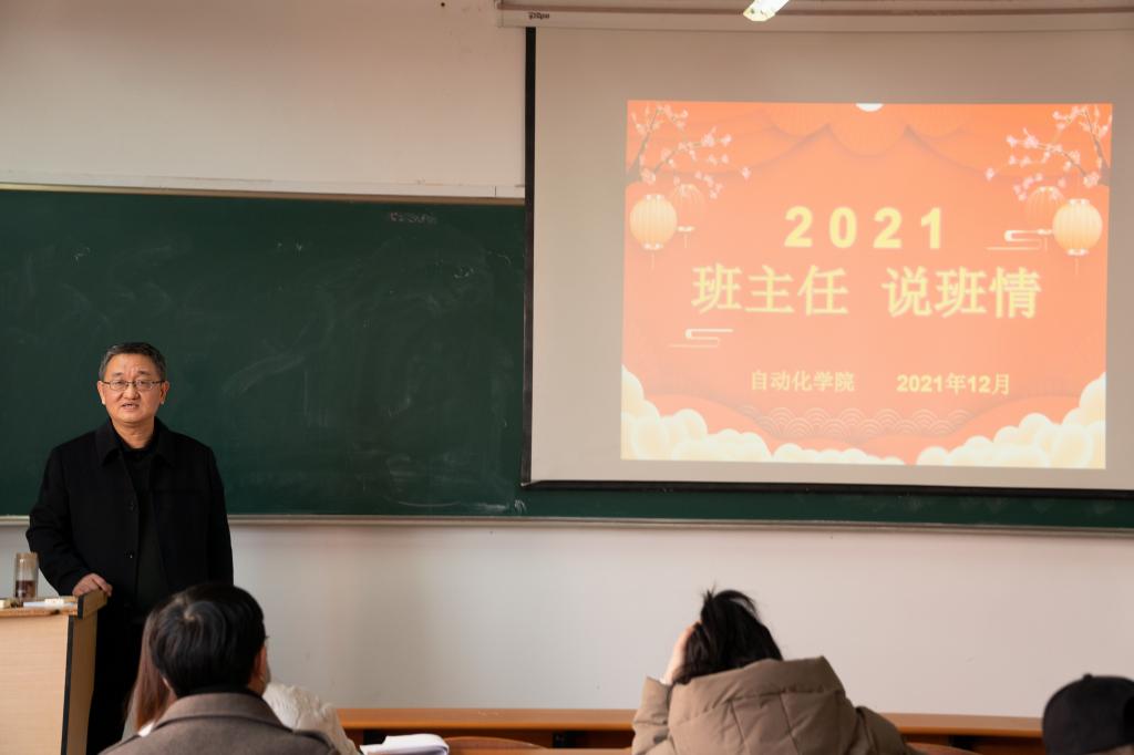 为加强班主任队伍建设,提升育人工作实效,12月22日中午,自动化学院在滨江校区13号楼416举行了“2021年班主任说班情”活动,党总支书记钱永林,党总支副书记于施佳,学工办主任罗鹏举,滨江校区全体辅导员和班主任出席了本次活动。