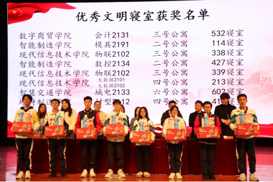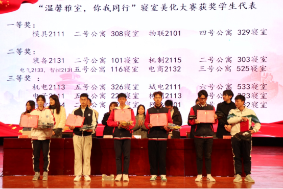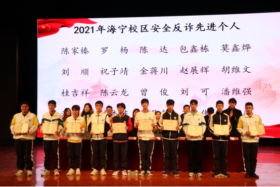 大会上各位老师宣读了2021级新生军训优秀教官、优秀助教、海宁校区第三届劳模培育班优秀学员、优秀文明寝室、“温馨雅室,你我同行”寝室美化大赛、“清廉学风”手抄报比赛、海宁校区防诈宣传先进个人获奖名单,并为获奖同学颁奖。