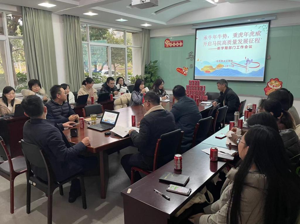 人勤春来早,奋进正当时。2月19日上午,马克思主义学院在滨江校区7号楼114会议室召开2022年春季新学期开学工作会议,总结2021年工作成绩,谋划部署本年度工作,坚定信心,凝心聚力,推进马院高质量发展。马克思主义学院全体教职工参加会议。会议由马院院长查广云教授主持。