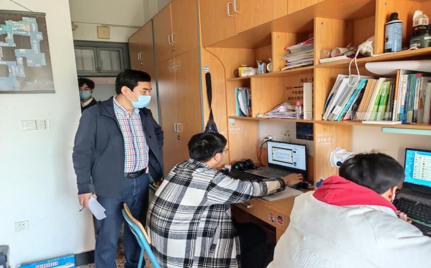 目前,海宁全市启动Ⅰ级应急响应。为了做实做细疫情防控工作,4月6日上午,自动化学院陈罡院长与辅导员占林军老师一起深入寝室,调研疫情防控工作,并实地了解学生学习情况及生活情况。