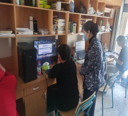 4月6日早上宋伟文书记与辅导员杨志鑫来到6号楼宿舍走访学生寝室,检查学生上课纪律及听课状态,并进行随堂听课,深入了解线上教学开展情况,实时关注学生学习情况。