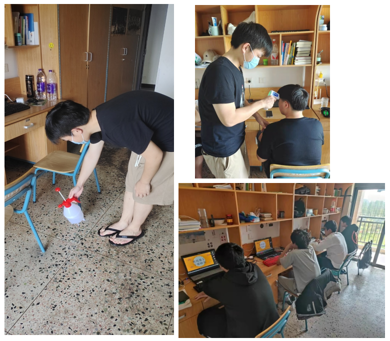 学院强化了日常管理,要求学生严格遵守各项防疫规定,督促学生落实每日健康监测,及时进行核酸检测,主动配合排查管控工作。此外, 学院对因疫情无法返校的同学也已全部严格落实“一对一”联系制度,每日通过视频、电话、或线上沟通与学生保持联络,关心学生学习、生活,关注学生身体情况、心理状态。实施静态管理以来,学生们均按时完成新冠核酸检测、每日温度测量并在“企业微信”完成上报,让学生在校园里也能“宅得安心”,隔离学生均身体情况良好,心理状态稳定。