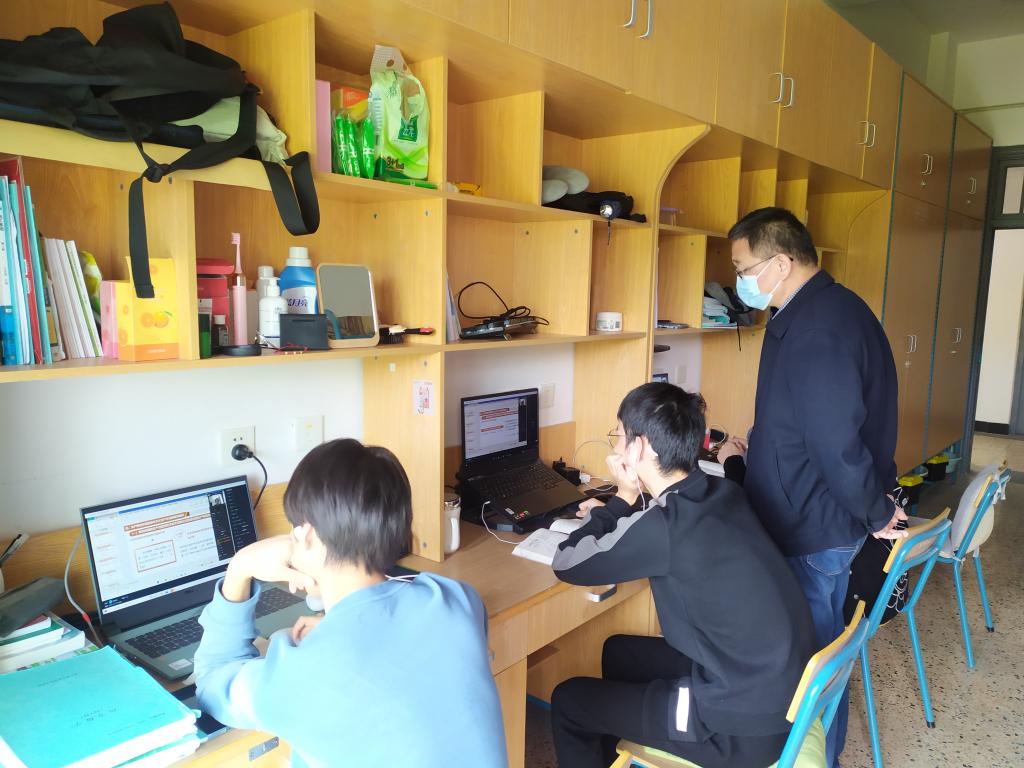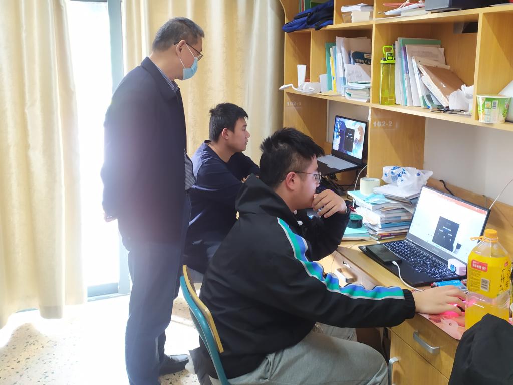 走访之后钱书记与辅导员们召集团学干部和各班班长开展座谈会,会上钱书记对学生干部们提出5点要求:1.继续保持良好的精神风貌,鉴于目前的疫情形势同学们都只能宅在寝室中进行线上教学,通过走访发现绝大部分寝室整体的卫生情况、学习状态都非常令人满意,在接下来的学习和生活中应继续保持;2.多途径扩展自身知识面,线上上课期间切不可消极怠工,不仅要完成学校规定的课程计划,而且要在这段时间里充分利用好互联网资源,通过课外学习提高自己,完善自己;3.合理安排好学习和课余活动时间,宅校不宅心,线上教学期间更应该增强户外体育锻炼,通过打球、跑步、跳绳等各种体育活动调节身心状态,始终保持积极昂扬的生活状态;4.充分发挥朋辈互助作用,积极调动班干部、入党积极分子、退役士兵等学生骨干的主动性和能动性,团结班级同学,互帮互助共同进步,努力营造积极向上的班级氛围;5.加强与老师的沟通交流,遇到任何困难第一时间向老师和辅导员反映,学院都会积极帮助大家解决,为同学们的健康成长保驾护航。