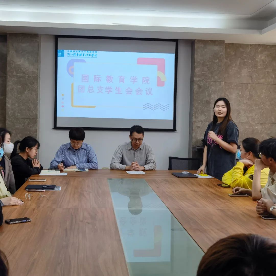4月28号下午,在滨江校区三号楼406会议室,国际教育学院召开了团总支学生会第二次会议,部署关于志愿汇、学生日常学习等工作。国际教育学院学工办主任黄熠老师、辅导员宋宇凡老师、各部门部长以及20级各班班长参加了会议。会议由学生会主席李妍主持。