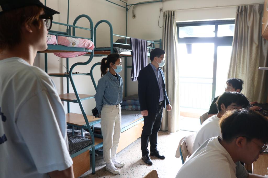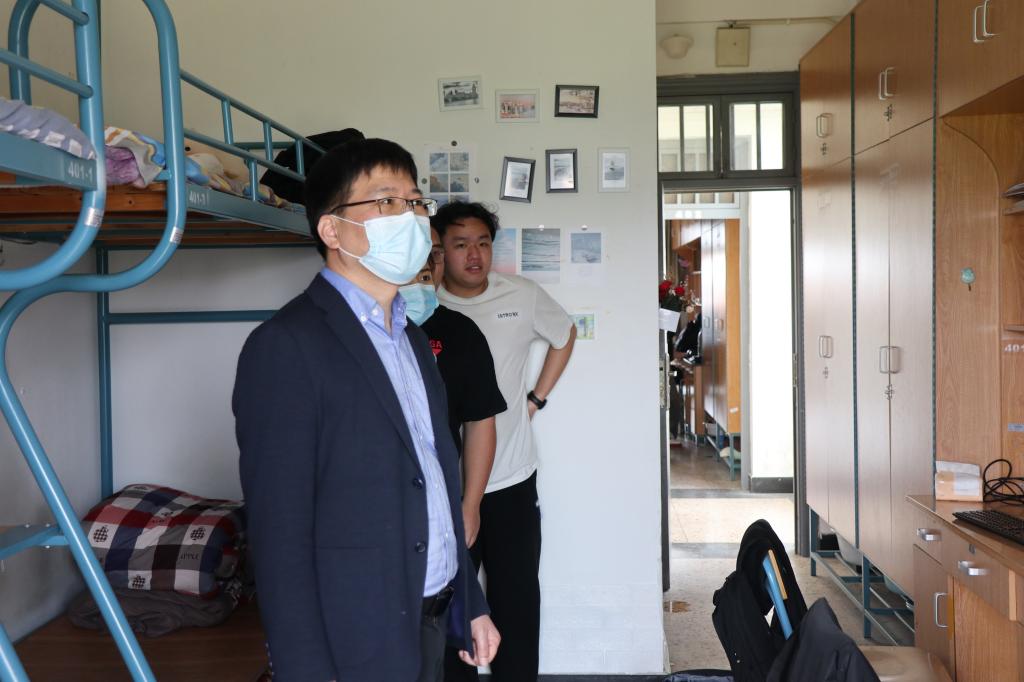走访期间,楼书记和同学们亲切交谈,深入了解同学们的学习情况与健康状况,叮嘱学生提高自我防护意识,养成良好的生活习惯,保持寝室整洁卫生。在和同学们谈心时,楼书记希望同学们要提高科学防疫的意识,自觉遵守学校防控规定,定期进行核酸检测,坚决不点校外外卖,共同构筑校园疫情防线。