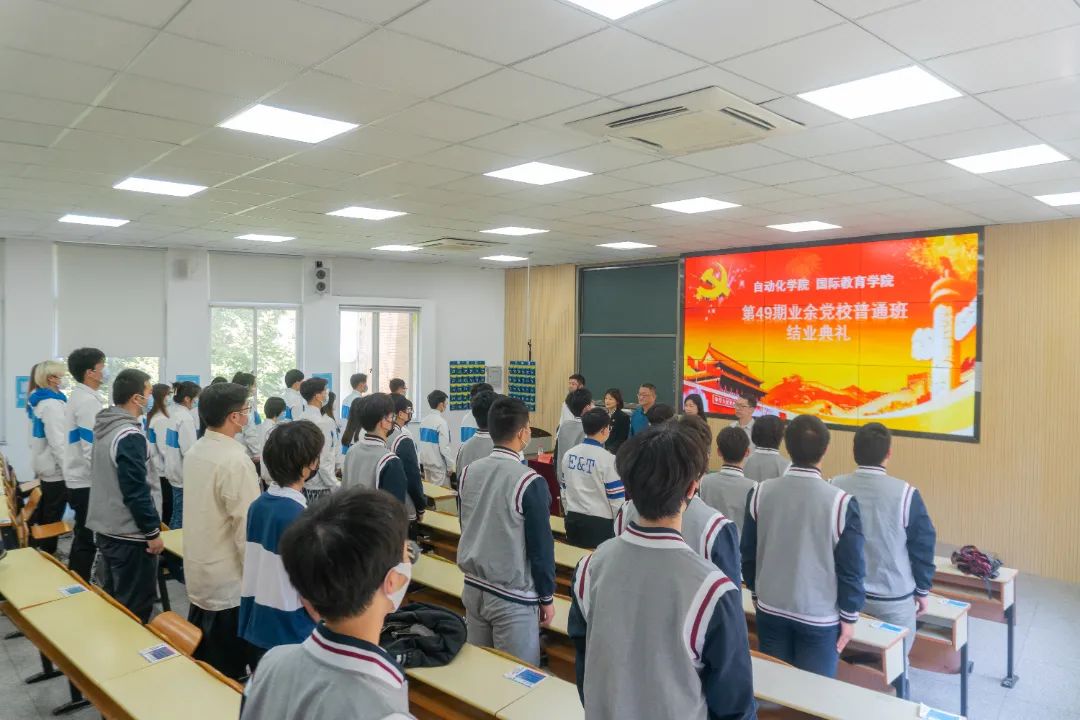 5月3日下午,自动化学院、国际教育学院联合开展的第49期业余党校普通班在6号楼扇形教室迎来了结业典礼。自动化学院党总支书记钱永林、国际教育学院党总支书记周琳、自动化学院党总支副书记于施佳、国际教育学院学生党支部书记黄熠、自动化学院电气自动化学生党支部书记罗鹏举以及自动化学院、国际教育学院全体业余党校学员参加了此次典礼。本次典礼由电气自动化学生党支部书记罗鹏举老师主持。