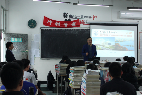 在招生宣传讲座上,招生就业处温老师为同学们播放了我校的宣传片,并从专业角度出发,用幽默诙谐的语言为同学们介绍了我校的发展历史、办学特色、区位优势、就业和升学等内容。增材制造学院楼建忠老师就分院专业特色和优质实训设备等进行了详细介绍。在互动交流环节里,温长胜老师、楼建忠老师、谢青青老师又与学生们介绍了我校的招生政策和历年录取情况,鼓励并欢迎同学们填报我校。