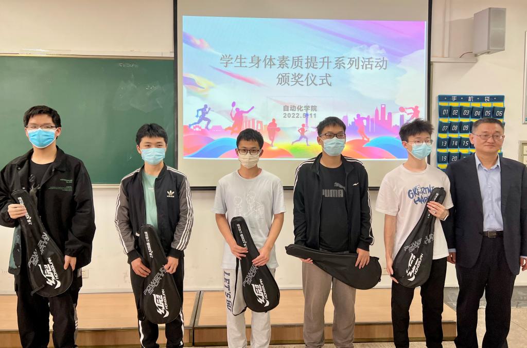 为贯彻落实《中共中央国务院关于加强青少年体育增强青少年体质的意见》(简称中央7号文件),根据学校“增强体质,掌握技能,培育习惯,塑造人格”的目标及“强体健魄、树我邦国”的体育精神,进一步提高自动化学院学生体质健康水平,5月11日下午,自动化学院“学生身体素质提升”系列活动表彰大会在13号楼416举行。学院党总支书记钱永林、学工办主任罗鹏举、辅导员庞万兴、占林军、谢钟涛出席了本次会议。