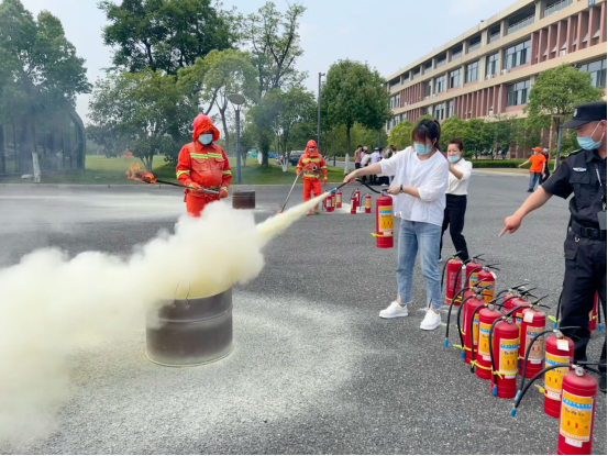 为进一步提升工作人员的消防应变能力和火灾逃生技能,提高自身抵御火灾事故的防范能力,随后,进行了应急疏散演练和消防器材实操演练活动。应急疏散演练过程中撤离迅捷有序,集结纪律严明,表现出良好的应急反应能力,展现出了安全教育的良好成果。最后,校园微型消防站队员讲解了灭火器的基本知识,并示范了灭火器的使用方法,所有人员积极参与灭火体验,掌握正确的操作技能。
