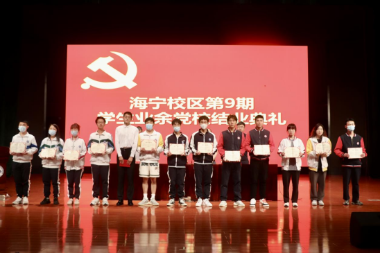 6月9日晚,海宁校区第九期学生业余党校结业典礼于小剧场举行。海宁校区管委会党总支书记陶勇、党总支青年委员方惠玲、党总支宣传委员杨秀飞、第二学生党支部书记杨哲出席,第九期学生业余党校学员参加本次结业典礼。结业典礼由杨秀飞老师主持。