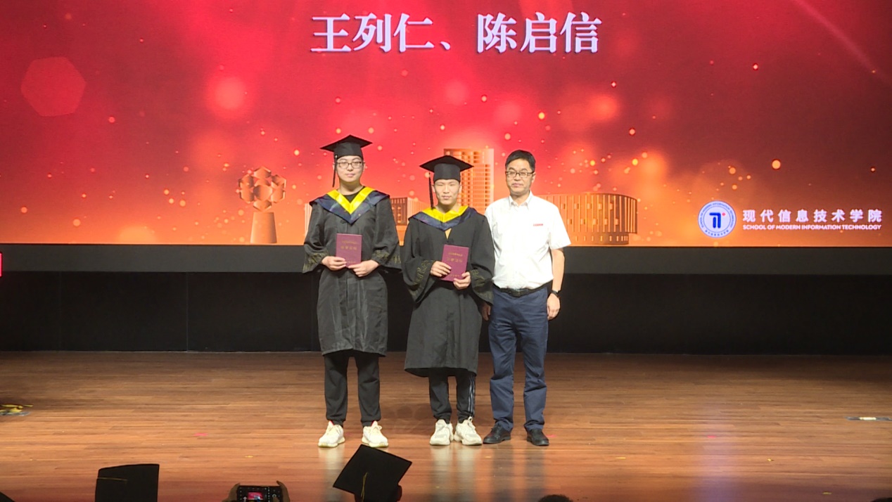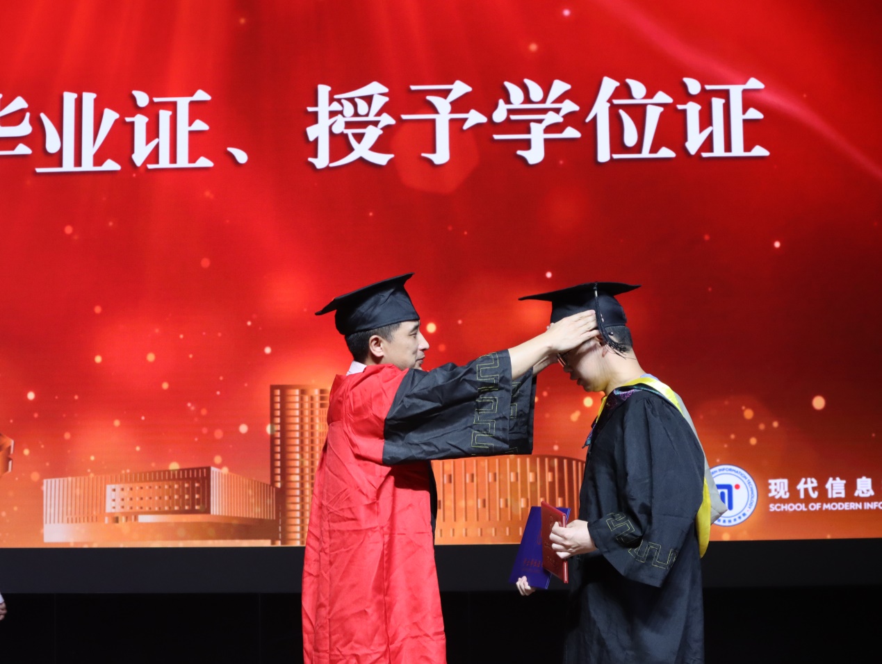 学位授予仪式上,浙江水利水电学院信息工程学院执行院长王军博士、浙江机电职业技术学院现代信息技术学院院长卢涤非博士为毕业生拨穗、颁发证书。