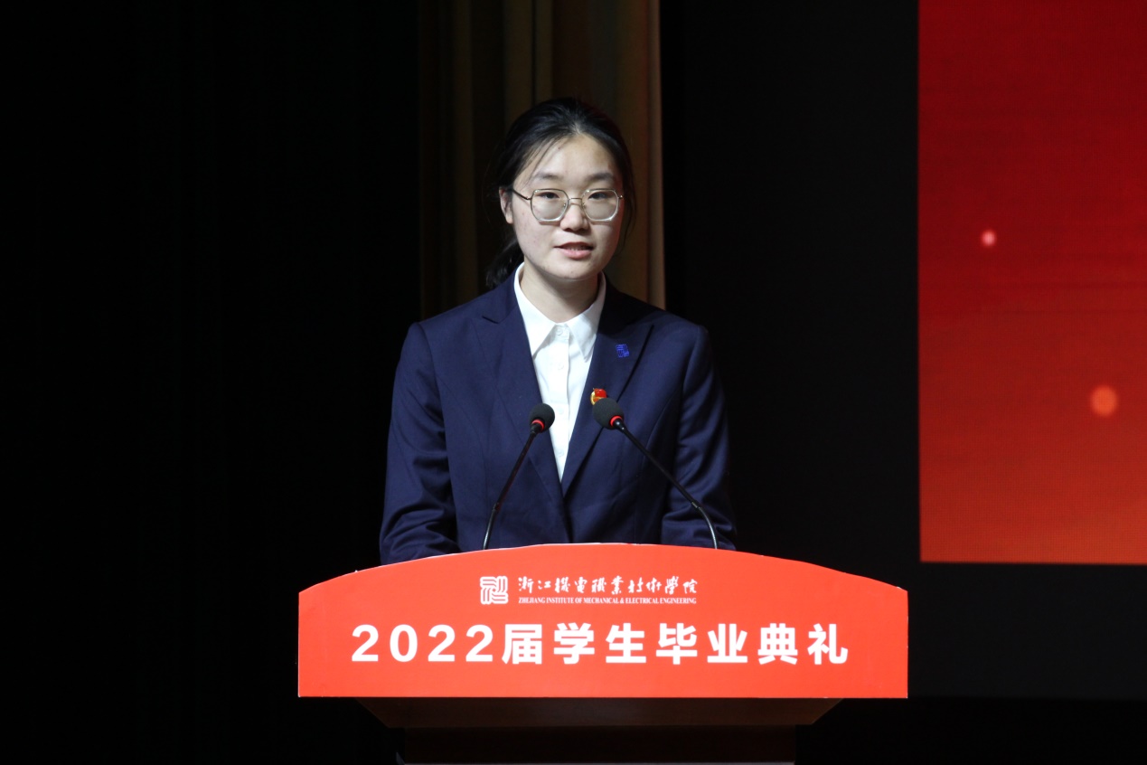 在校生代表、大数据2002班叶佳敏发言。她代表全体在生向物联网工程专业2022届本科生致以诚挚的祝贺。于道各努力,千里自同风。她向学长学姐们承诺,将继续秉承信息精神,担负重任,书写辉煌。