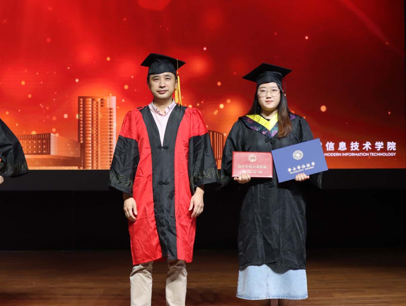 现代信息技术学院党总支书记任峰为受到表彰的省级、校级优秀毕业生颁发荣誉证书。