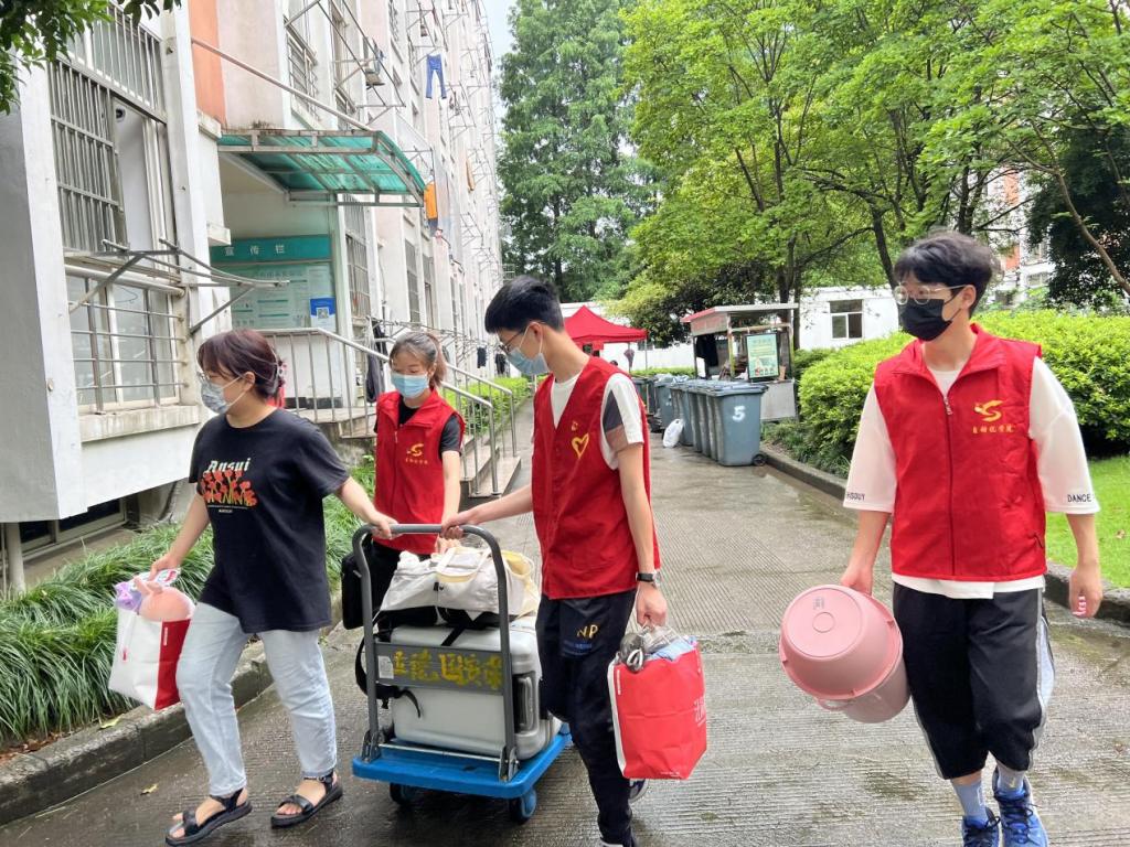 春风送夏至,夏至起骊歌;六月花又开,筵席终有散。为进一步教育引导毕业生铭记党恩,情系母校,深植爱校荣校情怀,营造健康、文明、和谐、有序、暖心的毕业离校氛围,提升毕业离校教育工作温度,助力毕业生踏上人生新征程,自动化学院组织开展“心怀党恩,情系母校,扬帆起航”2022届毕业生文明离校系列活动。本次活动由电气自动化学生党支部组织并发起学生党员成立志愿者团队,自动化学院党总支书记钱永林,党总支副书记于施佳,学工办主任罗鹏举到场参与指导,他们帮助毕业生搬运行李,让毕业生感受到自动化学院的温暖,为毕业生即将结束的大学生活画上圆满的句号。