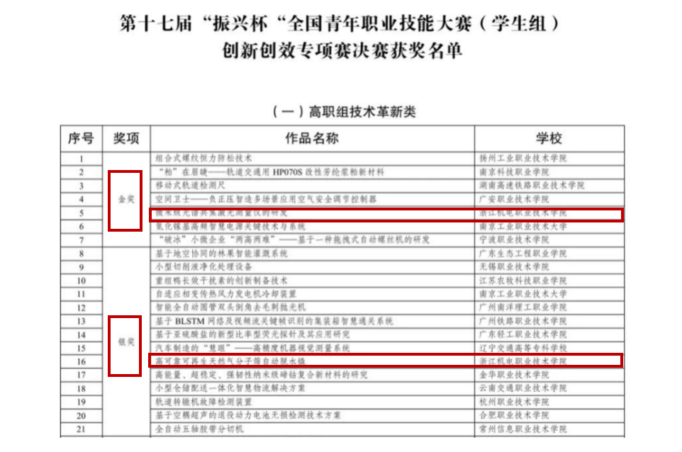 第十七届“振兴杯”全国青年职业技能大赛(学生组)创新创效专项赛决赛于6月27日至28日举行,本次决赛共有来自全国25个省份的187件作品入围,涵盖技术革新、创意设计和管理创新3个竞赛方向。经过激烈角逐,浙江机电职业技术学院自动化学院参赛选手张银亮、魏毅天在本次比赛中脱颖而出,荣获学生组金奖一枚、银奖一枚!