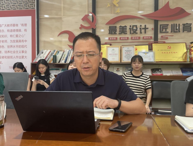 学院党总支副书记符强向全体老师通报了暑期党建开展的重点工作和新学期党建工作的重点,部署了学生报到返校的相关工作,并强调要求所有老师遵守政治规矩、关注网络舆情,在各类平台上文明发言,在新学期授课过程中切实加强学生的思想政治教育,并将课程思政落到实处;要求辅导员老师、全体班主任深入一线,按照下班级、下寝室的要求,深入到学生中间,尤其是加强对心理问题学生的排查和帮扶,在主题班会上加强学生防诈安全教育,确保平稳有序安全开学。