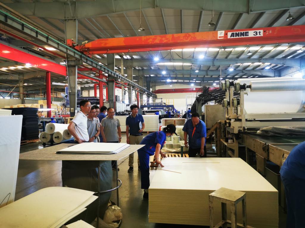 华江科技董事长周明海、营销总监方建祥、生产总监何斐鲁等负责人热情接待了来访教师,双方围绕制造业信息化、数字化、智能化发展趋势,就人才培养、学生就业、产学研合作等事宜进行了交流。周明海董事长介绍了企业发展历程,公司主流产品以及在汽车内饰、建筑装饰复合材料研发和产业化,并提出公司技术升级和数字化车间建设对高技术技能人才需求日益迫切。周纯江副校长向企业介绍了学院办学历史和成就,表示学校是国家“双高计划”高水平学校建设单位A档(全国前十),一直秉承“求实、求精、求新”校训,始终以服务浙江制造业以及制造服务业为己任,致力于培养制造业以及制造服务业技能技术人才,致力于提升服务区域经济社会发展能力。