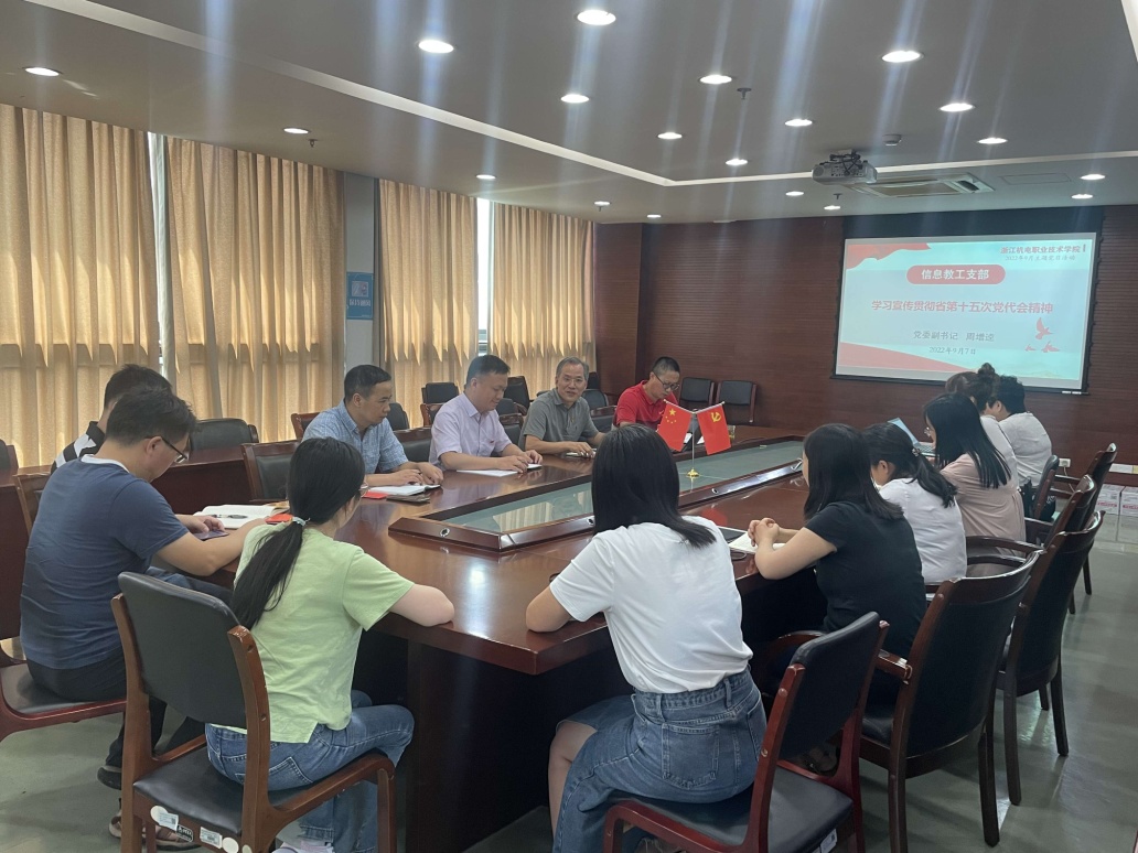 宋革联老师就习近平总书记在省部级主要领导干部“学习习近平总书记重要讲话精神,迎接党的二十大”专题研讨班上的重要讲话精神进行主题发言。杨彬蔚老师就习近平总书记向世界职业技术教育发展大会致贺信精神做主题发言。信息教工党支部各位教师就自身教学经历和个人发展分享了学习心得体会。