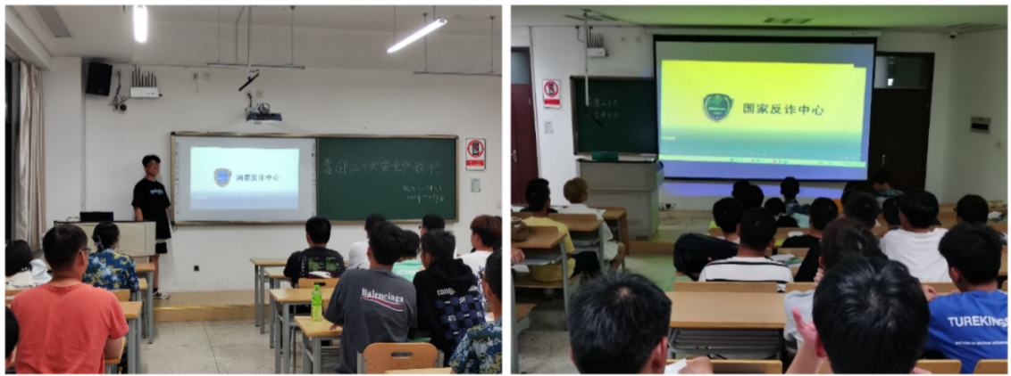 本次活动共有三个环节:介绍电信诈骗的相关知识、学习“国家反诈中心”APP的使用以及所有新生观看安全警示记录短片。首先辅导员向同学们普及了校园网络电信诈骗的种类、特点及易受骗成因,并就校园常见的网络电信诈骗案件进行解析,重点强调了电信诈骗、网络游戏诈骗、网络购物诈骗、网络刷单等几大类型,并针对性地列举了身边的真实案例,叮嘱学生提高警惕,吸取经验教训,努力识别各种形式的骗局,最大限度保障自己的人身财产安全。随后,检查各班级安装“国家反诈中心”APP情况,确保全覆盖。最后,所有同学现场统一观看防电信诈骗安全警示短片,加强宣传力度,时刻提醒学生紧绷防范之弦。