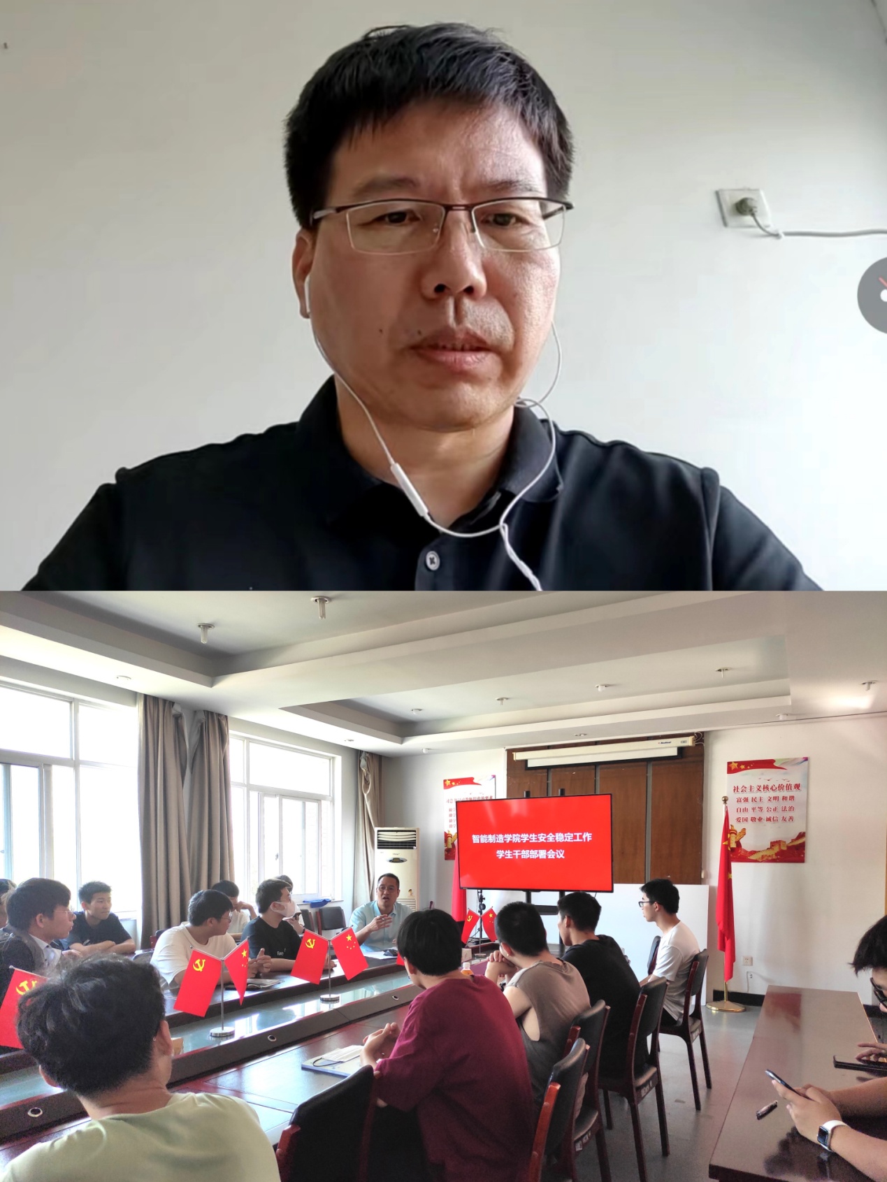 为深入学习贯彻习近平总书记关于平安建设、安全生产的重要指示批示精神,认真贯彻落实学校党委关于做好校园安全工作的部署要求,扎实推进国庆假期的安全稳定工作,智能制造学院于9月30日在7-416召开了学生安全稳定工作总支会议、辅导员和学生干部部署会议,并于12点半召开了班主任线上会议。
