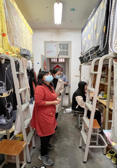 检查开始前,党总支副书记李君老师作动员部署和具体要求。随后,老师与学生干部分组进行地毯式排查,重点对宿舍内外卫生状况,寝室内违章使用大功率电器、私拉电线、饲养宠物等方面进行了检查。经检查发现,大部分寝室的总体情况较好,但个别寝室存在钥匙插在门上,私拉电线等情况,检查过程中当场缴获1个违章电器,记录并要求整改4个私拉电线的寝室,做到发现并当场整改寝室安全隐患问题,坚决杜绝危险用电情况。此外,辅导员老师在检查中还同时了解学生的思想、学习、生活等情况;叮嘱同学注意安全用电,强化安全意识;去鼓励同学养成良好卫生习惯,塑造舒适的寝室环境。