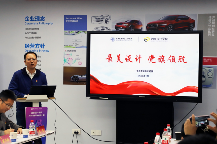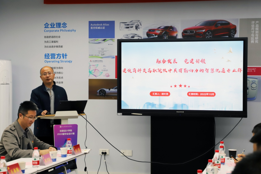 浙江机电职业技术学院创意设计学院总支副书记符强以《最美设计党旗领航》为题介绍了学院党建工作情况。学院党总支结合党建工作实际、专业特色优势,提出“党建统领、文化沁润、专业融合、体系构建”的党建工作思路和“三精三心”党建工作原则,并探索构建了“一统四融双提升”基层党建工作模式。