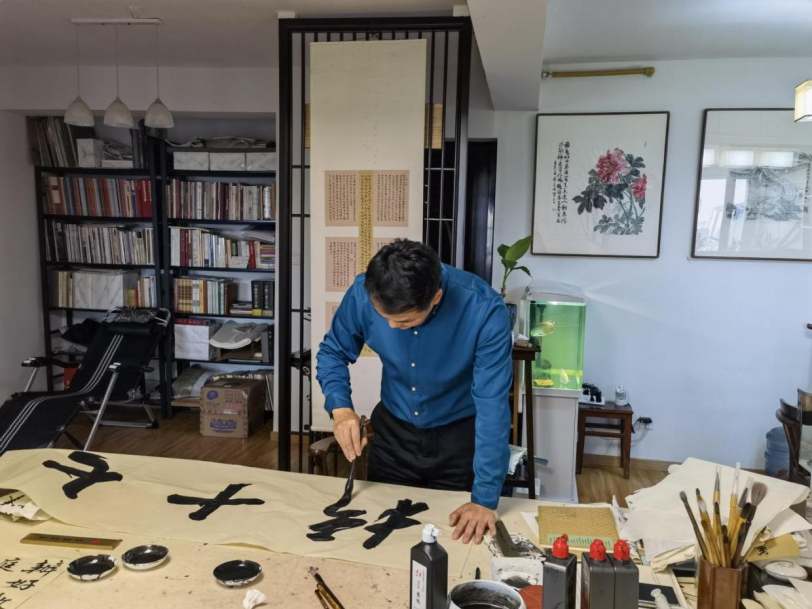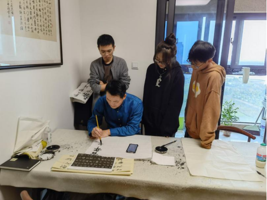 (蒋金岳老师指导项目组学生书法长卷训练)