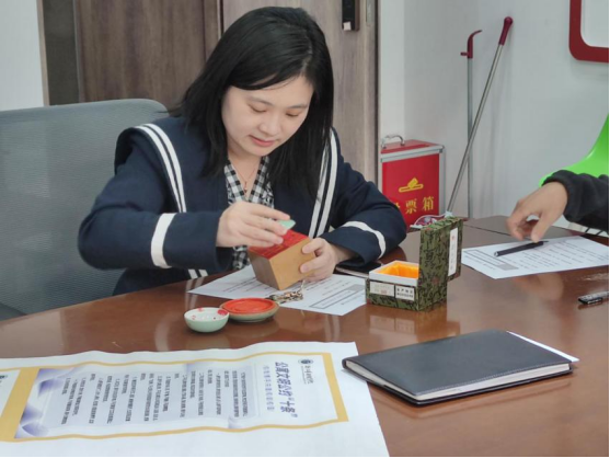 (分院总支副书记符强老师与书法项目组老师们讨论方案)