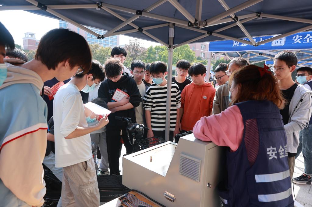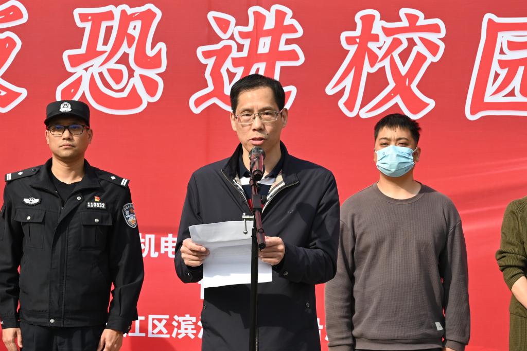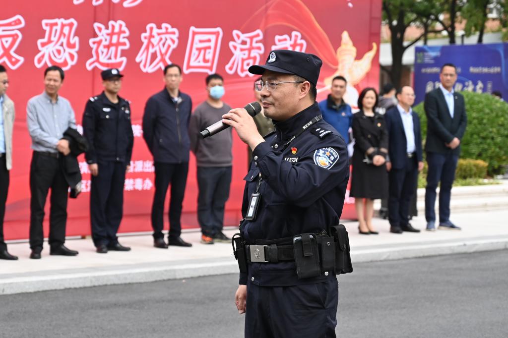 下午13点,活动正式拉开帷幕,保卫处处长诸玉富介绍到场的嘉宾,副校长周纯江宣布活动正式开始,两校区应急演练同步启动。