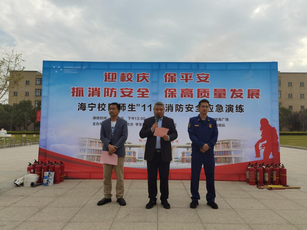 11月9日是第31个全国“119”消防日,为深入贯彻落实习近平总书记关于安全生产的重要指示,强化校园安全防控措施,增强师生员工的安全意识,提高师生面对突发事件的自防自救能力,我校保卫处联合我校保卫处联合浦沿派出所、浦沿街道平安办、长安镇消防站等相关部门,在滨江校区和海宁校区同步开展了“抓消防安全,保高质量发展”安全大练兵活动。副校长周纯江、保卫处长诸玉富、海宁校区综合办副主任朱旦标、各二级分院总支书记出席活动。教职工、安保人员以及学生代表等800余人参加了本次活动。