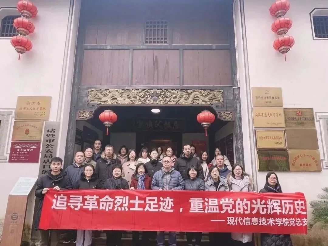 为追寻红色根脉,传承红色基因,开展形式多样的党的二十大精神学习活动,12月3日,现代信息技术学院党总支赴浙江诸暨开展主题党日活动,在重走革命先辈宣侠父的红色故地中学思践悟革命先辈的初心使命,感受党伟大光辉历程的时代脉动。