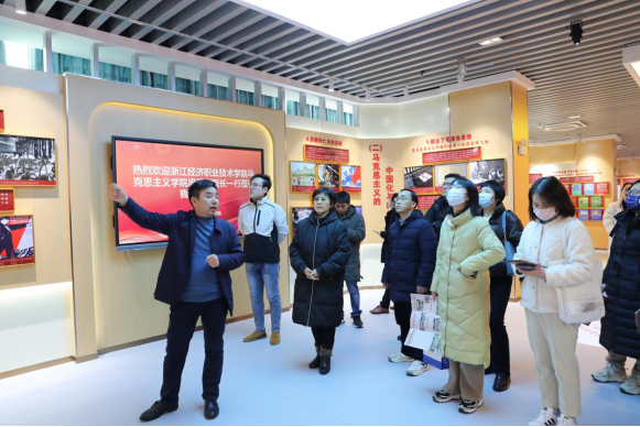 12月6日下午,浙江经济职业技术学院马克思主义学院总支书记、院长梁丽华、副院长寇翔率领学院全体思政课教师来我校筑牢“红色根脉”主题教育实践基地参观调研并开展“党的二十大精神”融入思政课的联合集体备课会。我校马克思主义学院党总支书记、院长查广云、副院长熊峰热情接待了梁院长一行。查广云教授为全体参访人员进行了现场讲解。